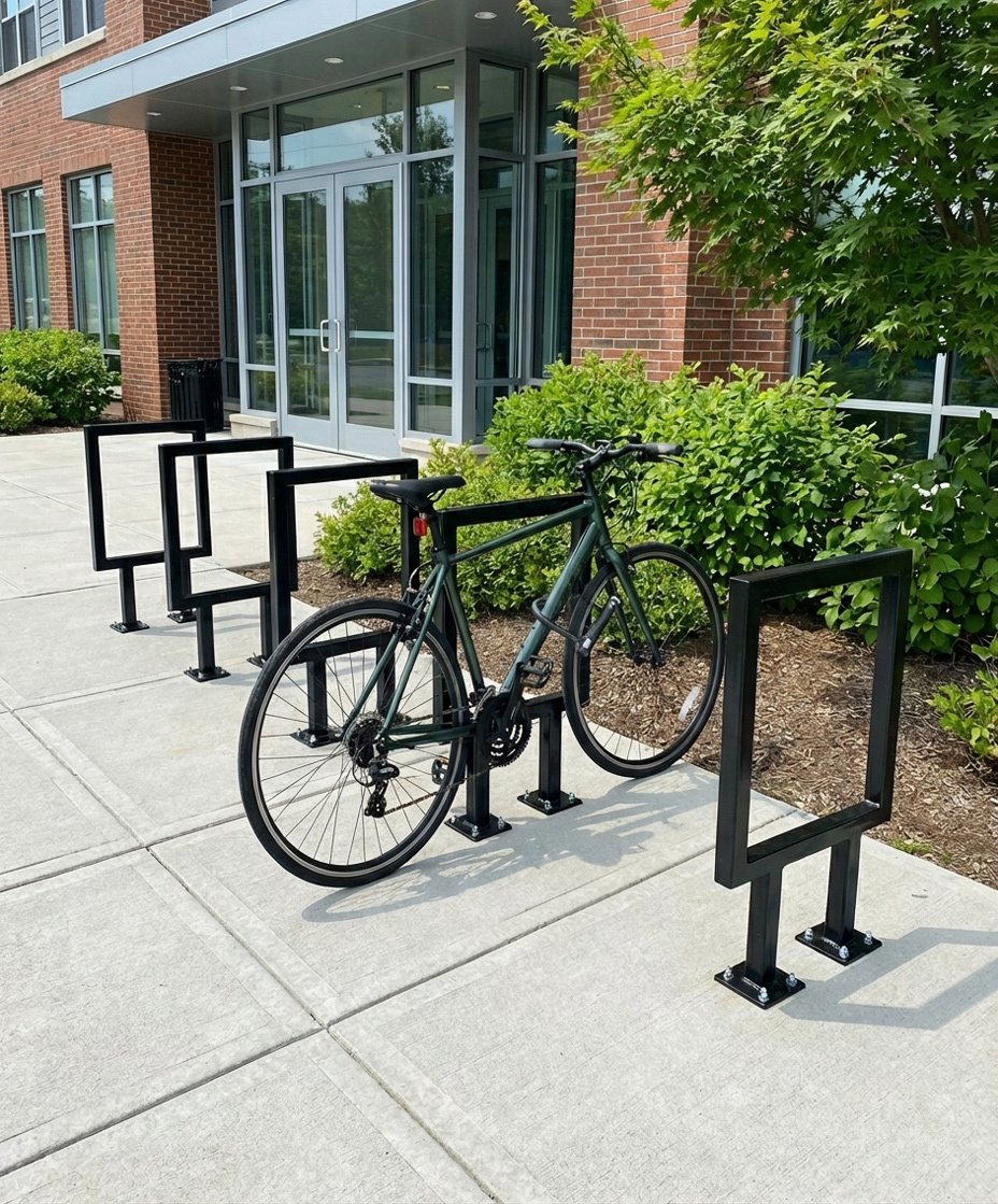 Each rack undergoes a professional powder coating process. This thick, durable finish protects the raw steel from rust, corrosion, and UV fading, ensuring your bike racks look professional for years to come. Choose from Black, Blue, or Red to match your branding or facility safety colors.